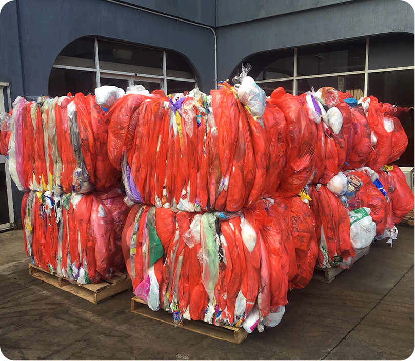 Councils and industry partners collect and bale soft plastics for transport.