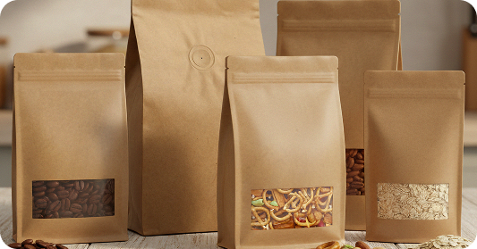 Our kraft pouches include high-barrier laminated layers that protect against air, moisture, and light—keeping food fresh for far longer than basic paper bags.