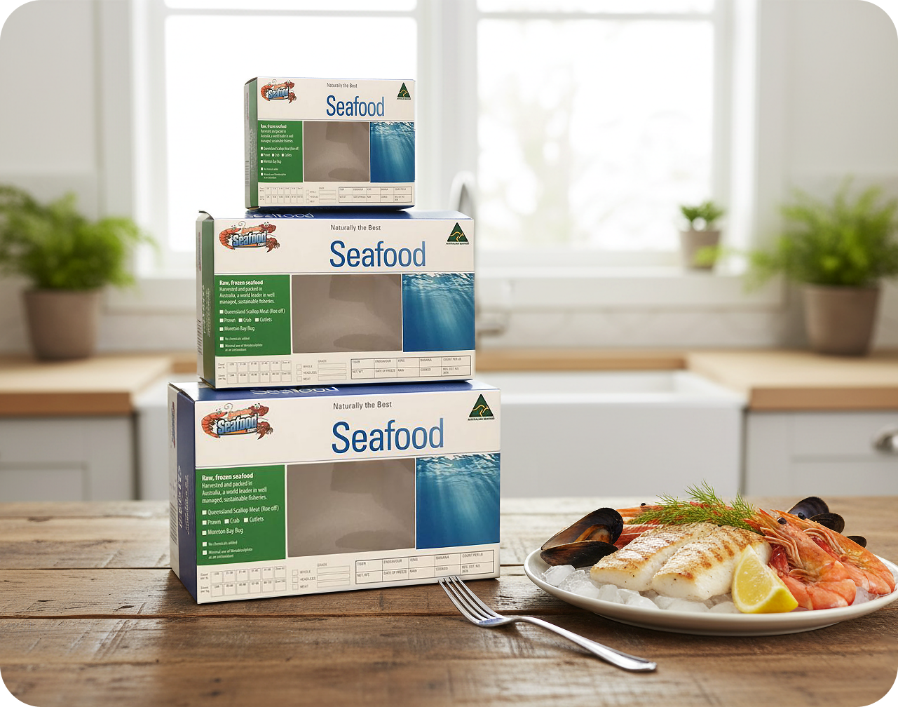 We supply custom seafood cartons to businesses across Brisbane, Queensland, and Australia. Whether you need prawn boxes for export or fish packaging for retail shelves, we deliver food-grade, moisture-resistant, and fully customisable solutions.
