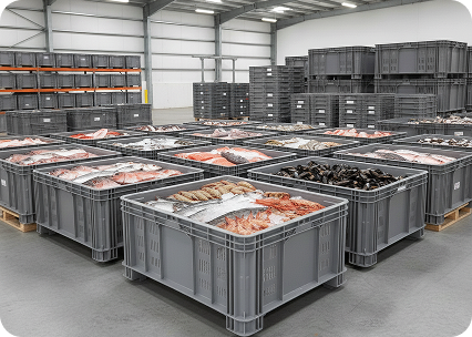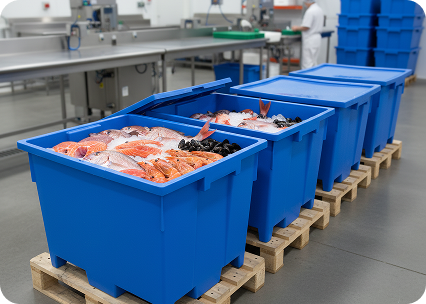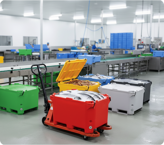We supply a robust range of roto-moulded insulated bins and containers designed for seafood processing, cold storage, and food transport. Made from UV-stabilised food-grade polyethylene with a PU-insulated core, these double-walled bins are engineered to maintain temperature, ensure hygiene, and perform under tough conditions.